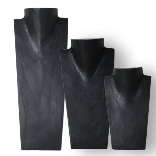 Wooden Necklace Display Bust Set | Black 3 pcs 7.9-11.8-15.7"