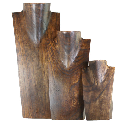 Wooden Necklace Display Bust Set | Deep Brown 3 pcs 7.9-11.8-15.7"