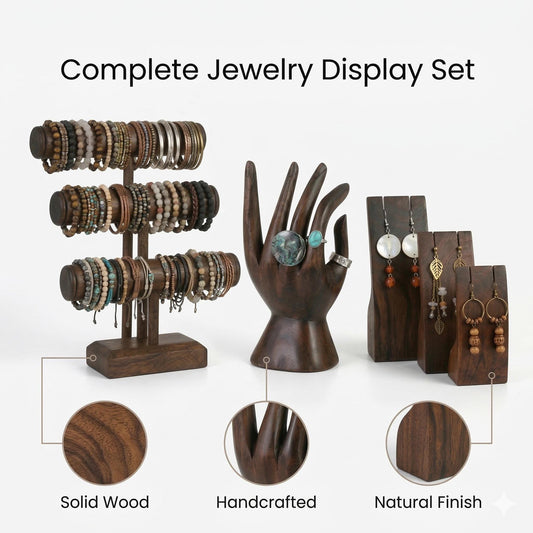 Wooden Jewelry Display Set | Black Bracelet + Hand + Earring